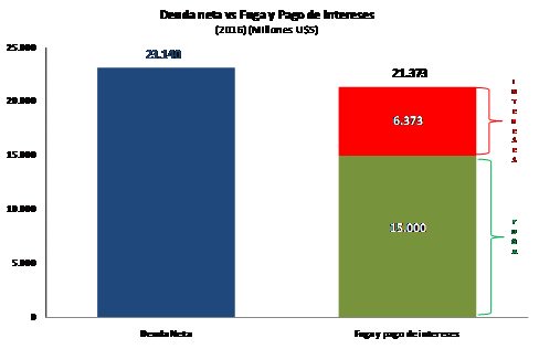 A su vez, el pago de intereses de deuda previsto para el 2016 es de 6.373 millones de dólares, lo que, sumado a la formación de activos externos, representa una "salida" neta de divisas por 21.373 millones de dólares este año.