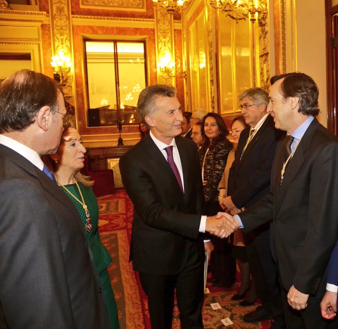 Además de reivindicar el vínculo histórico y fraternal que une a ambas naciones, Macri instó a los españoles a "profundizar" sus inversiones en un momento en el que el país tiene "estabilidad económica y reglas claras", y a tener juntos un rol protagónico para alcanzar un acuerdo de libre comercio entre el Mercosur y la Unión Europea (UE).
