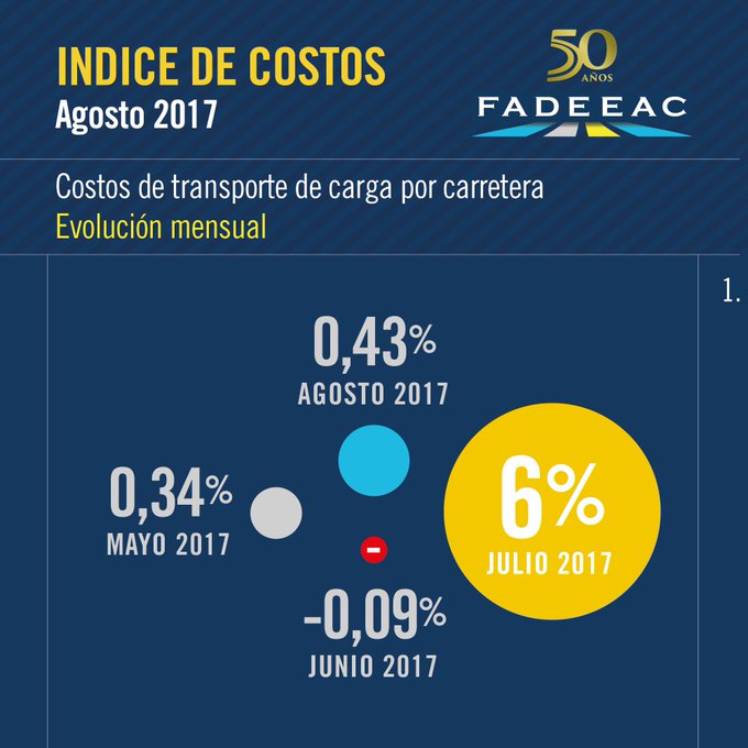 "En el último mes el costo trepó 0,43 %, por lo que el aumento acumulado de 2017 roza el 14%. Si la cuenta se inicia en agosto de 2016, poner en funcionamiento vehículos de cargas cuesta un 19,5% más", explicó ekl informe de la entidad.