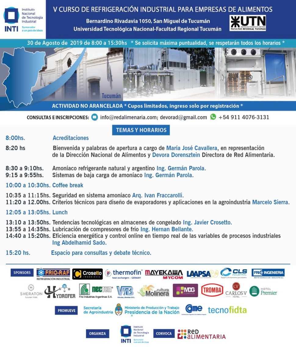 V Curso de Refrigeración Industrial para empresas de alimentos. Tucumán